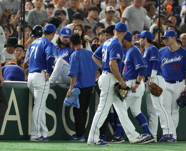 井上監督もベンチから駆けつけ、スタッフやナインが心配そうに見守る中、球場全体が緊張感に包まれました。