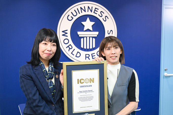 認定証授与式では、吉田さん自身が驚きと喜びを語りました。ギネスワールドレコーズジャパンオフィス代表・石川佳織さんから認定証が手渡され、その偉業が正式に讃えられました。
