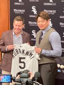 ホワイトソックス入団会見で背番号「5」を披露