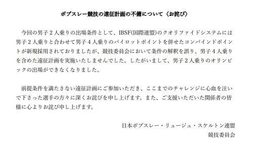 ・日本ボブスレー・リュージュ・スケルトン連盟が遠征計画で重大なミス
