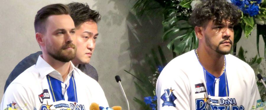 DeNAベイスターズの新助っ人4人が登場した入団会見。