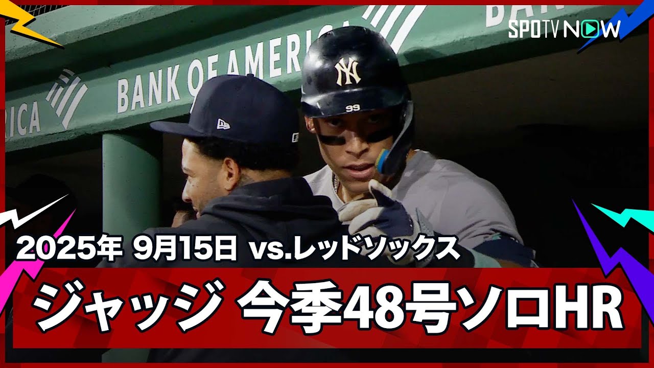 野球 MLBメジャーリーグホームラン日本人選手 ⚾ ジャッジ、逆方向へ“確信の一撃”! 2025年9月16日 💥 48号ホームランで2年連続の大台へ王手!2025年9月14日(現地時間)、ボストンで行われたヤンキース vs レッドソックス戦で、ヤンキースのアーロン・ジャッジ外野手が今季48号ホームランを放ちました!2試合ぶりの一発は、逆方向への特大アーチ。スタンドのファンも思わず感嘆する“確信歩き”の一撃でした。🔥🧨 右中間へ... おまめさん
